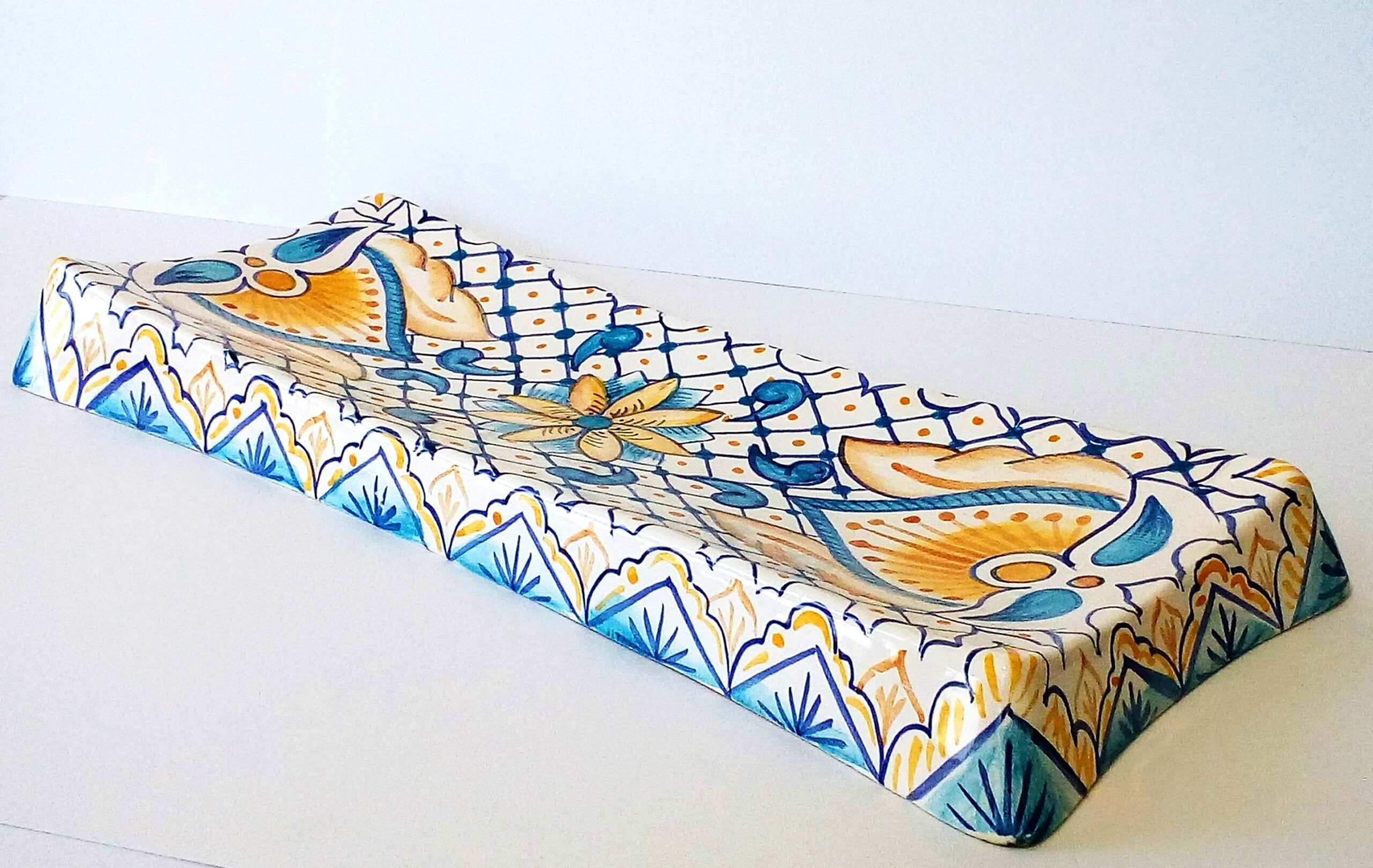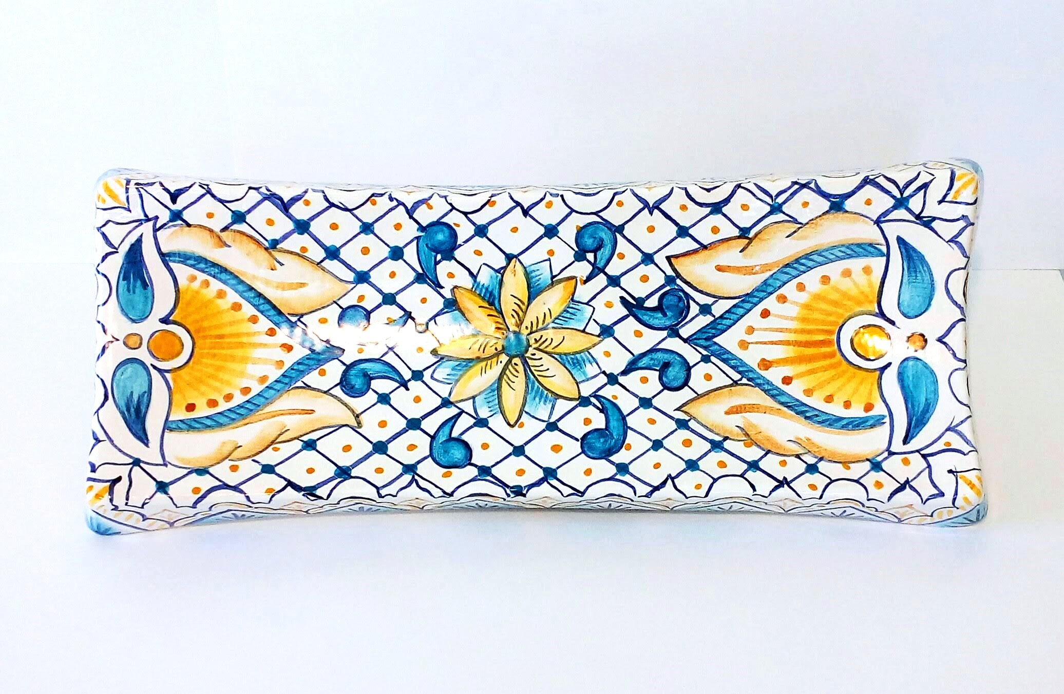 Bandeja de cerámica pintado a mano. Técnica Mayólica