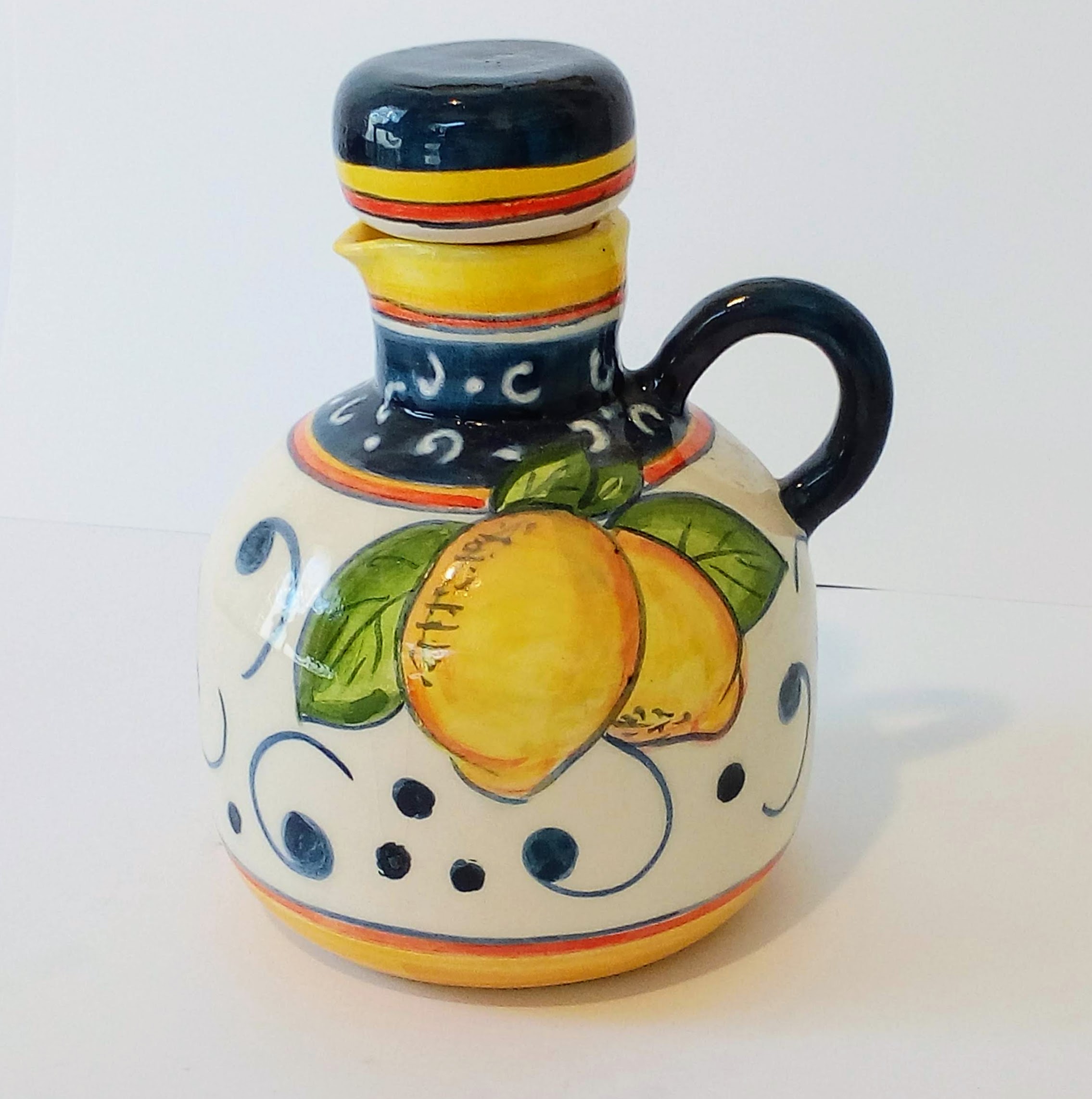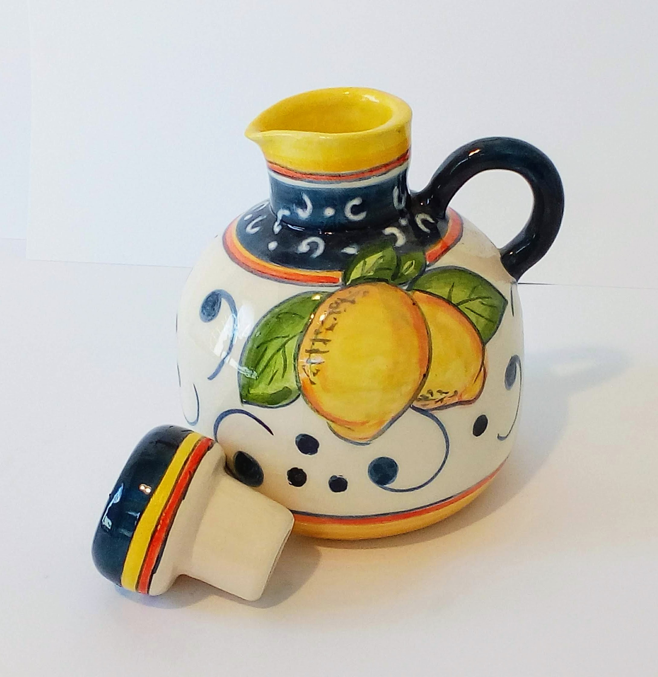 Botijo con tapa de cerámica pintado a mano. Técnica bajo cubierta
