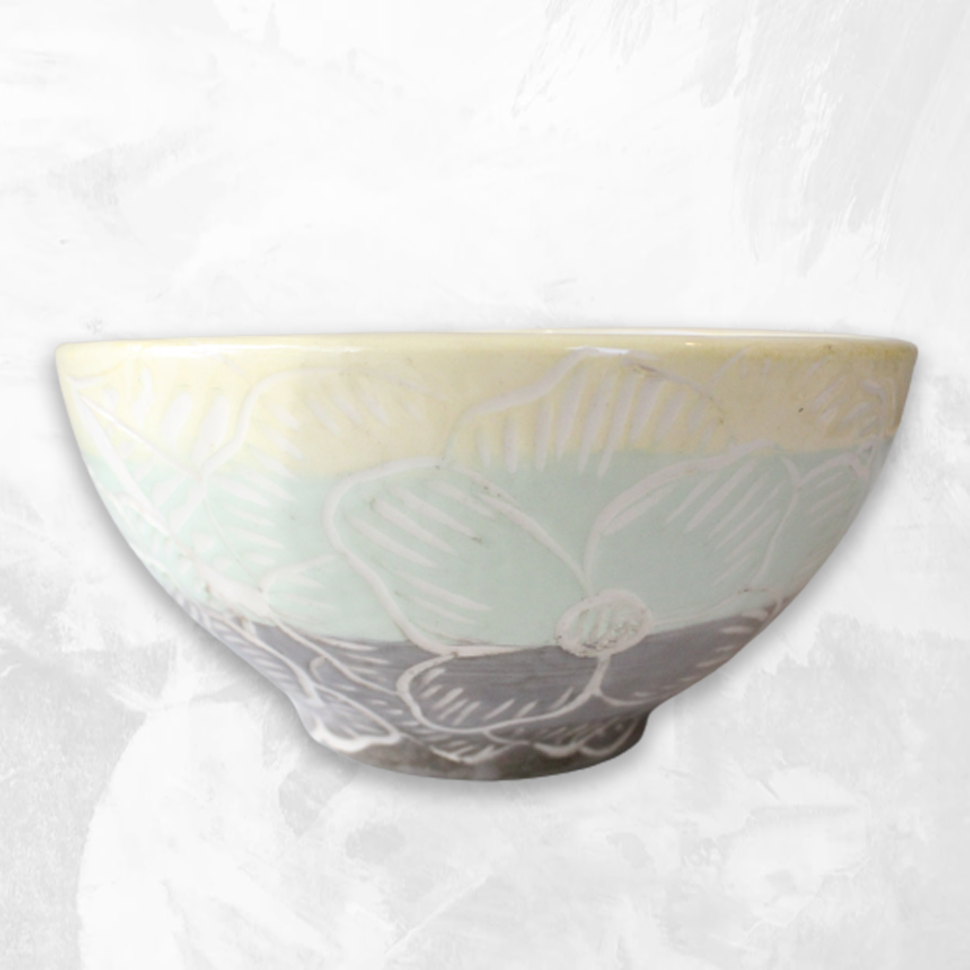 Bowl de cerámica pintado a mano. técnica engobe esgrafiado