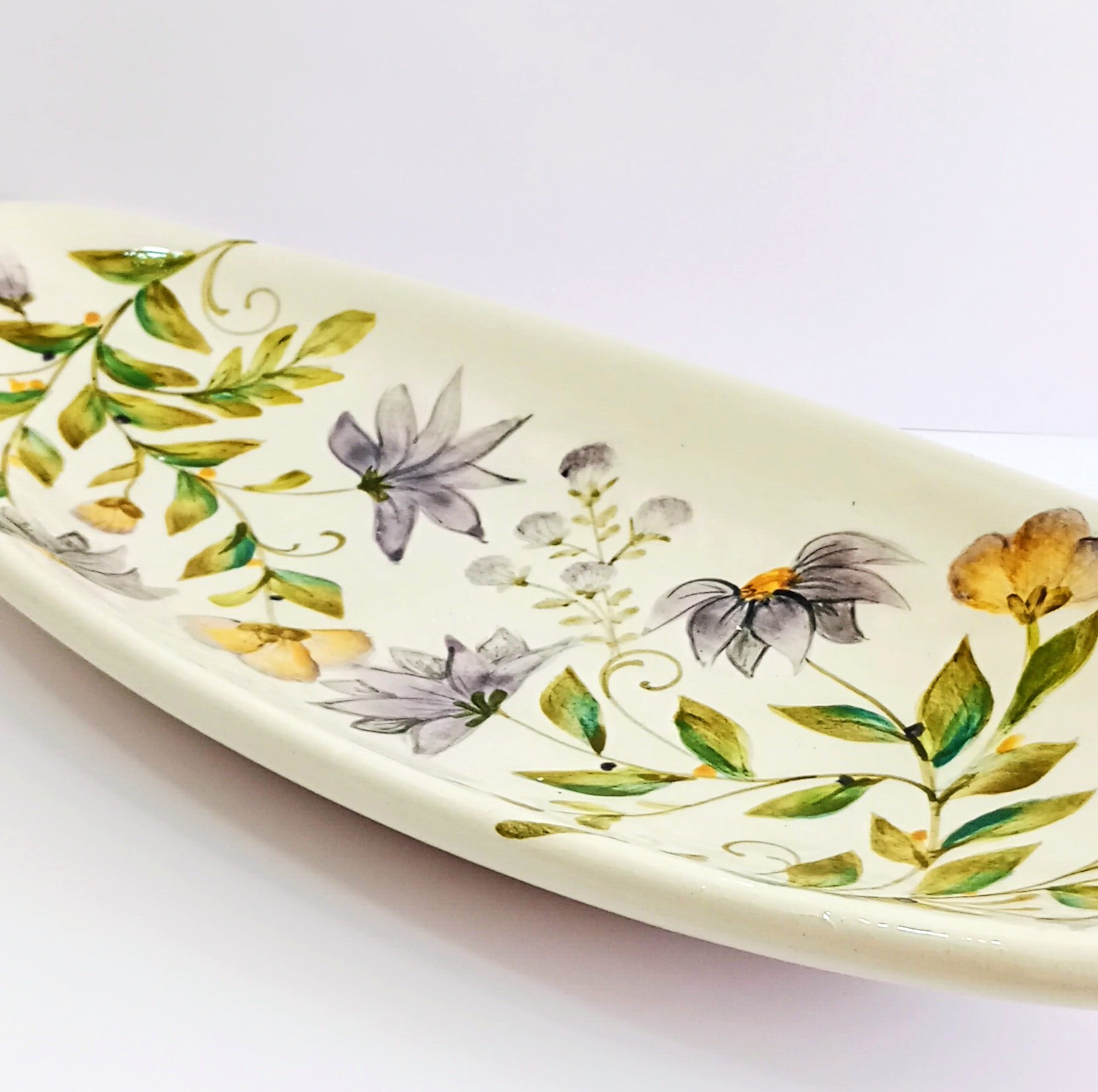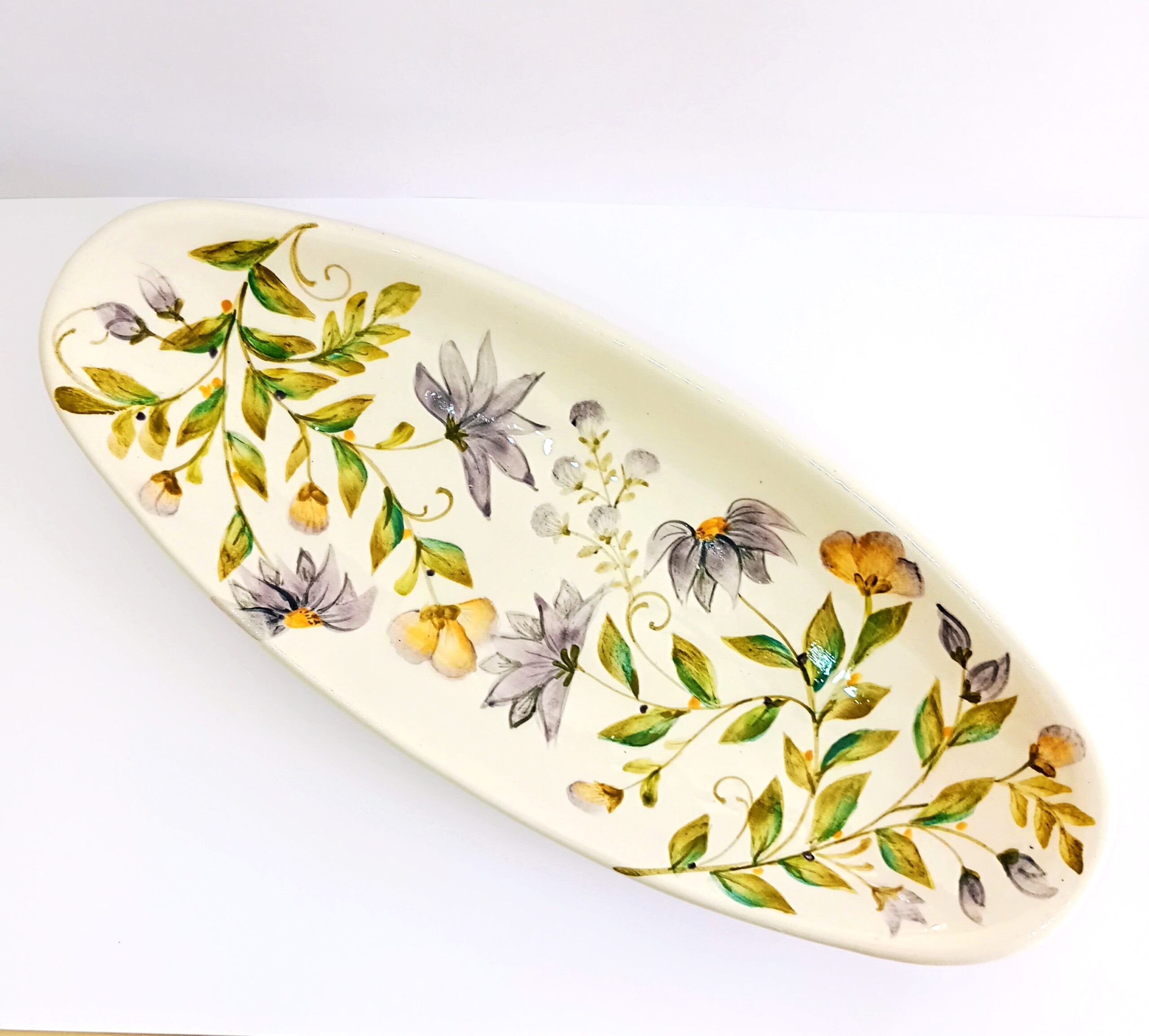 Centro de mesa de cerámica pintado a mano. Técnica bajo cubierta.