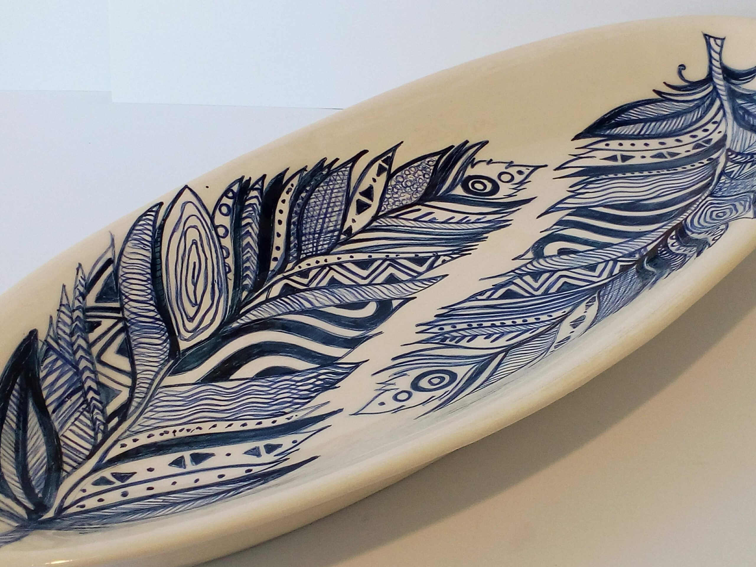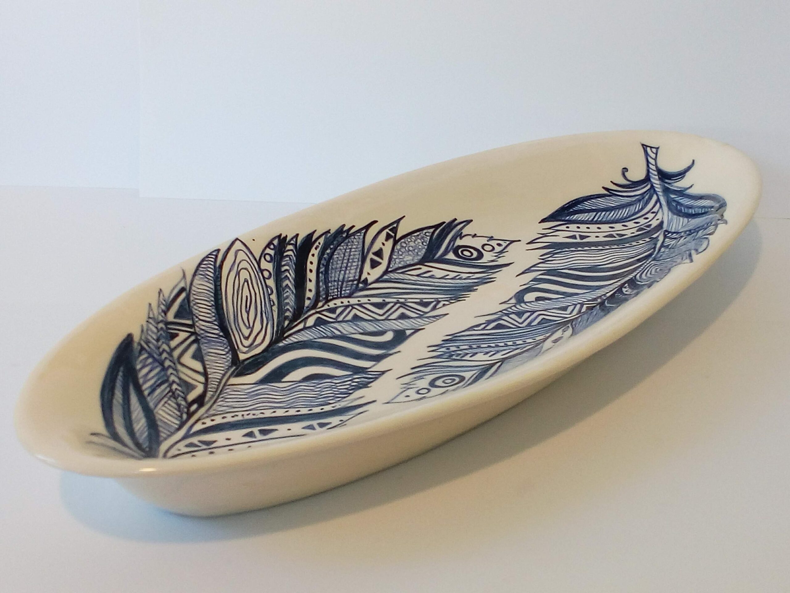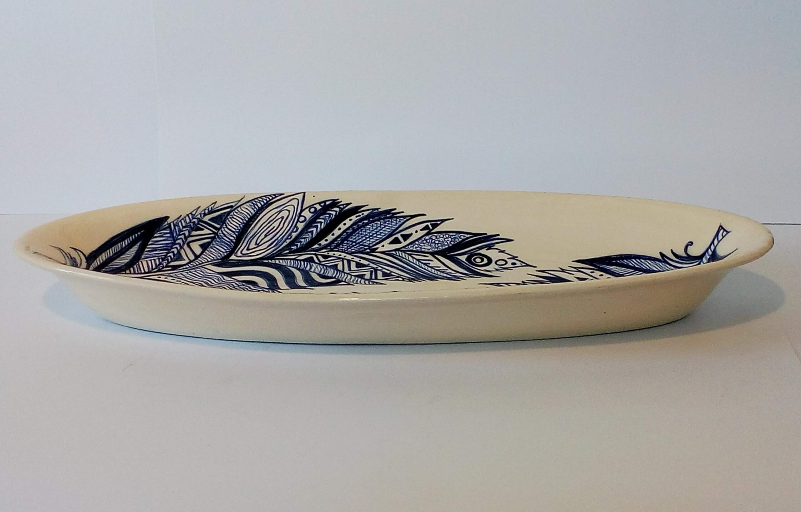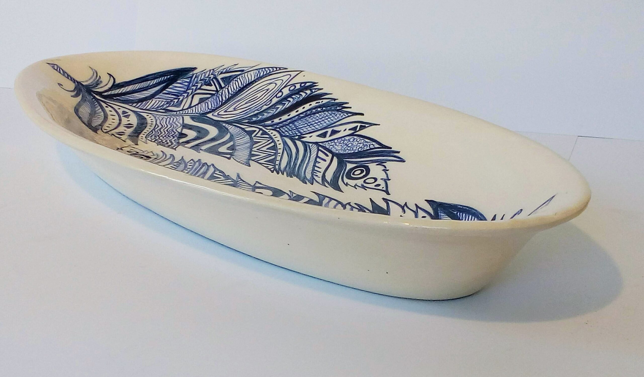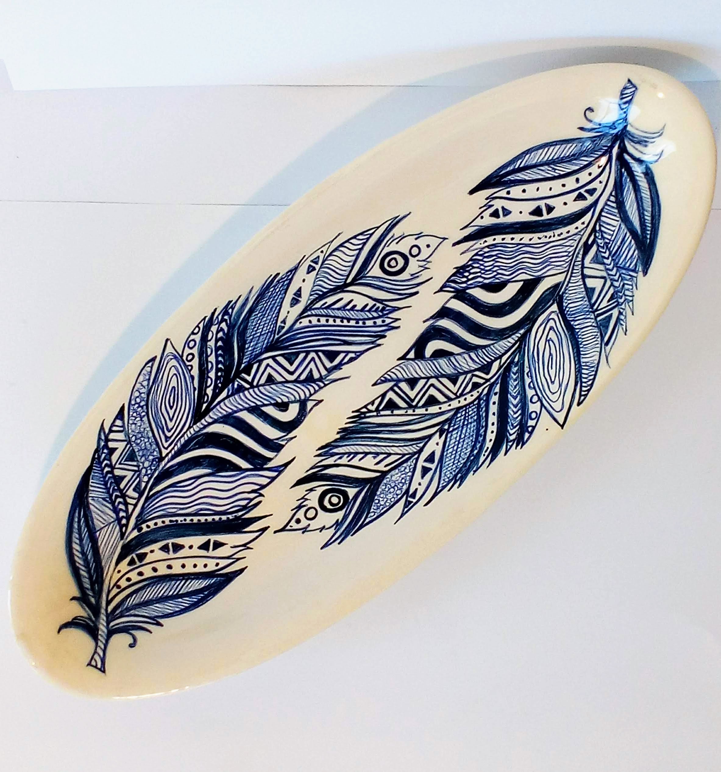 Centro de mesa de cerámica pintado a mano. Técnica bajo cubierta.