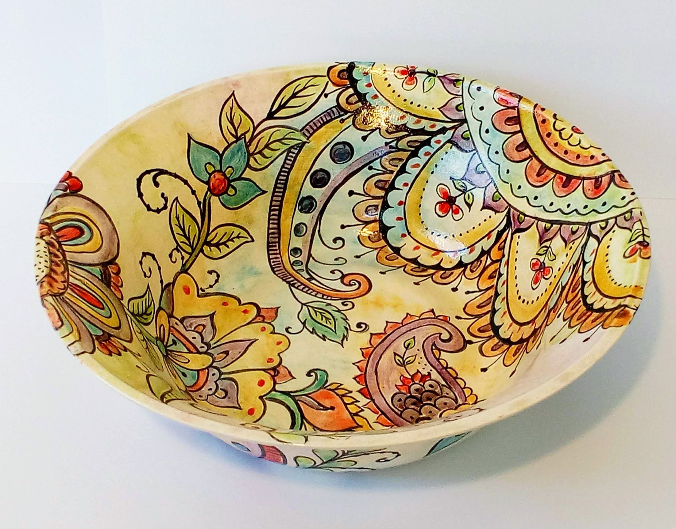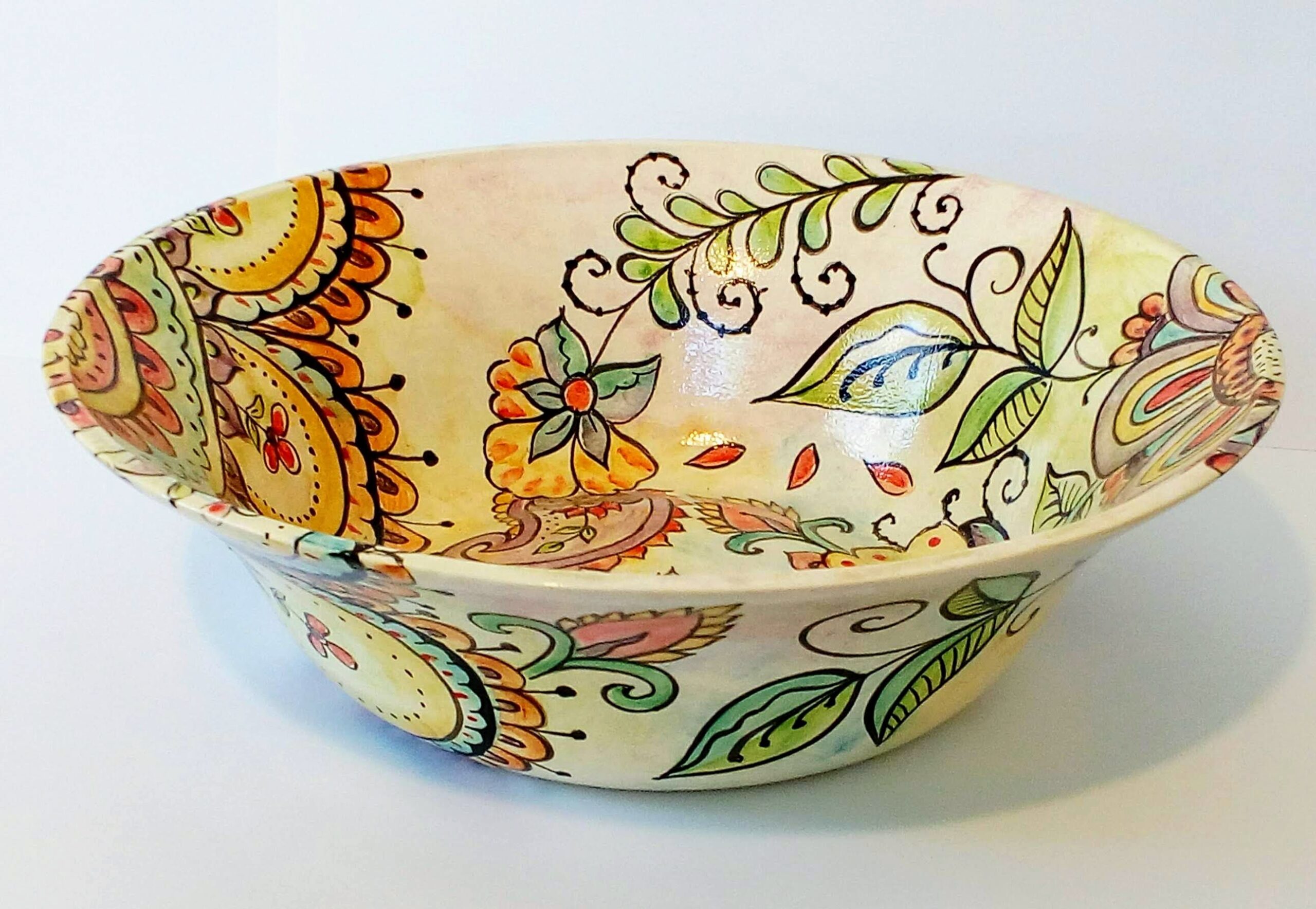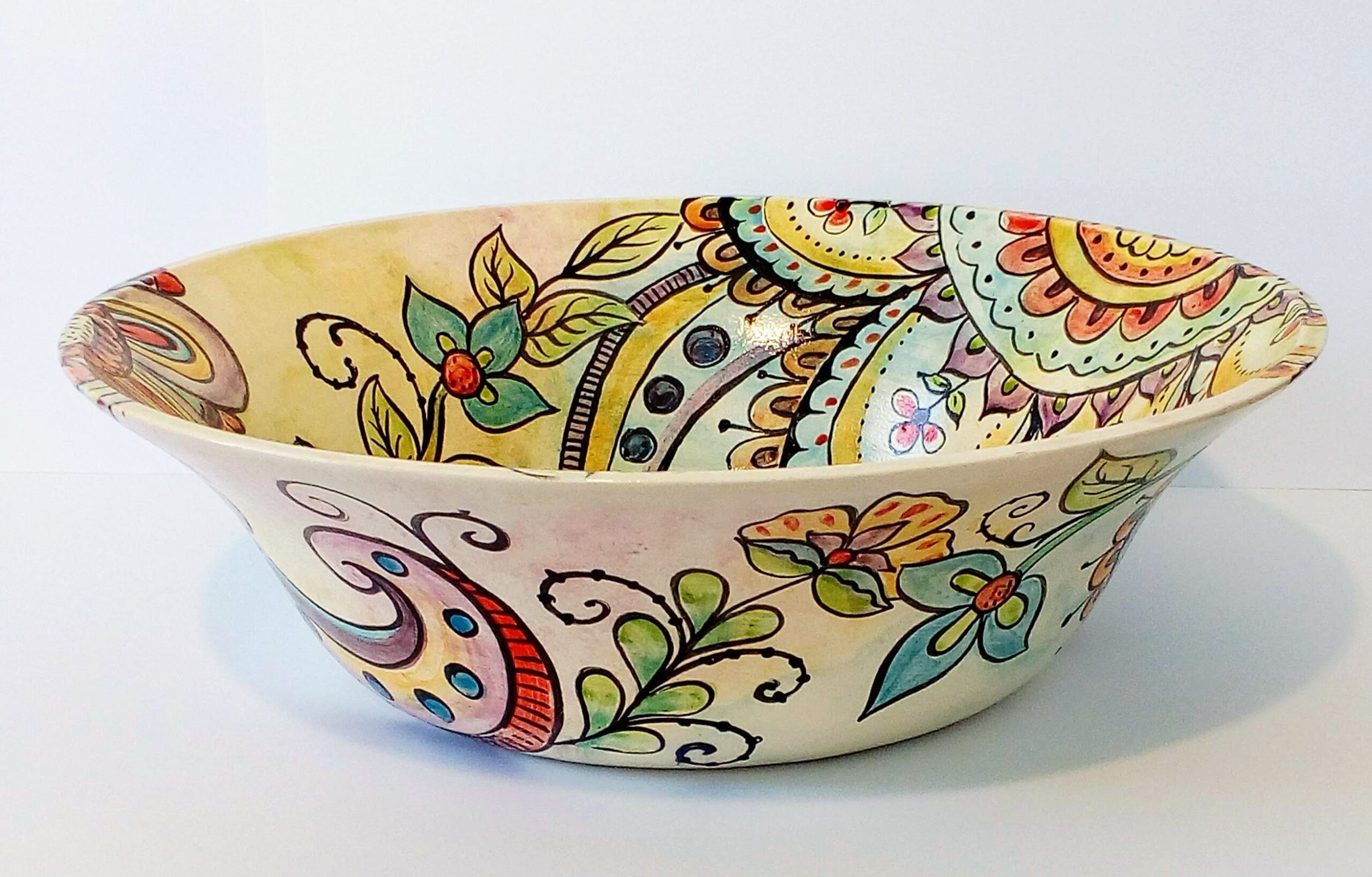 Pieza de cerámica pintada a mano, técnica bajo cubierta