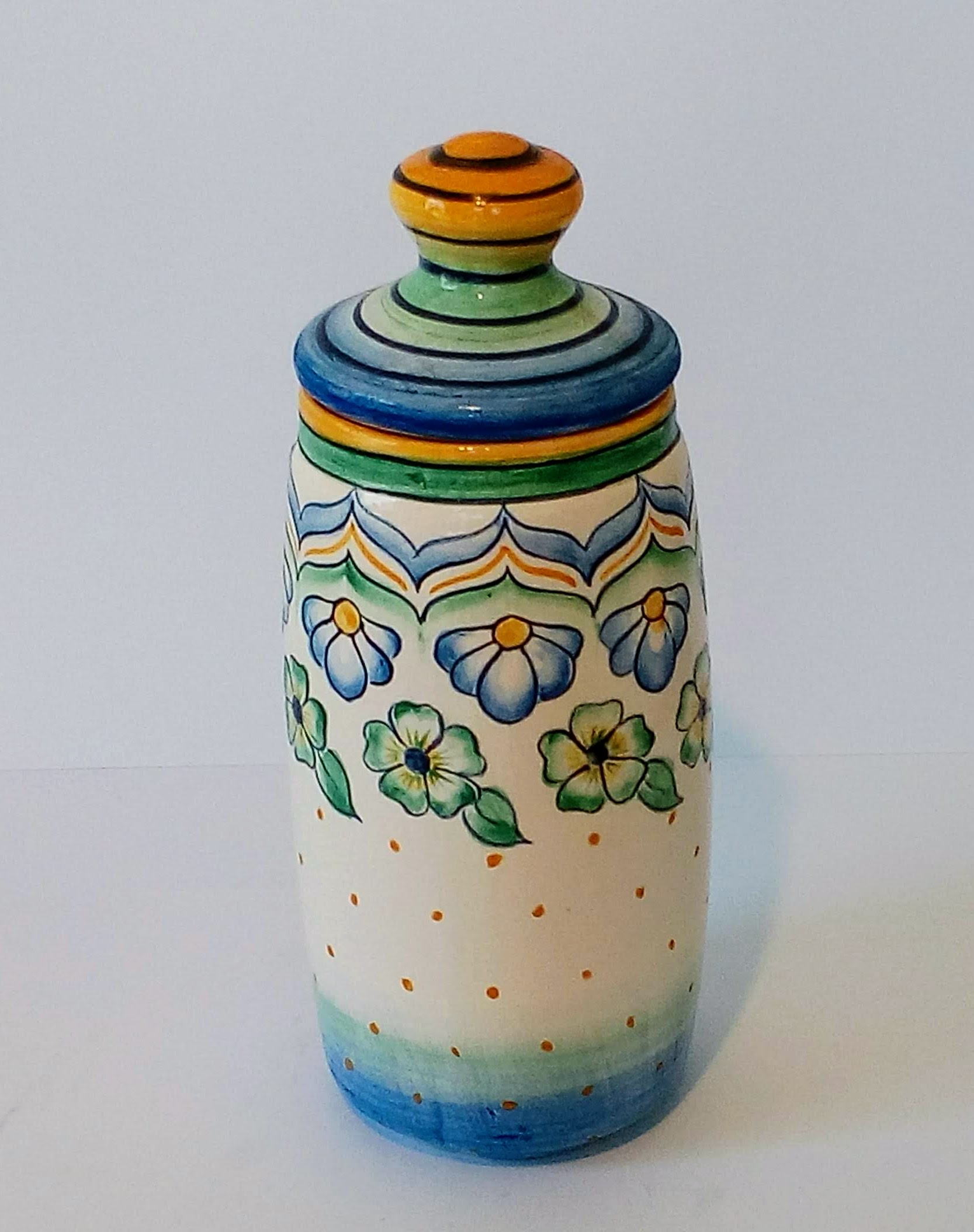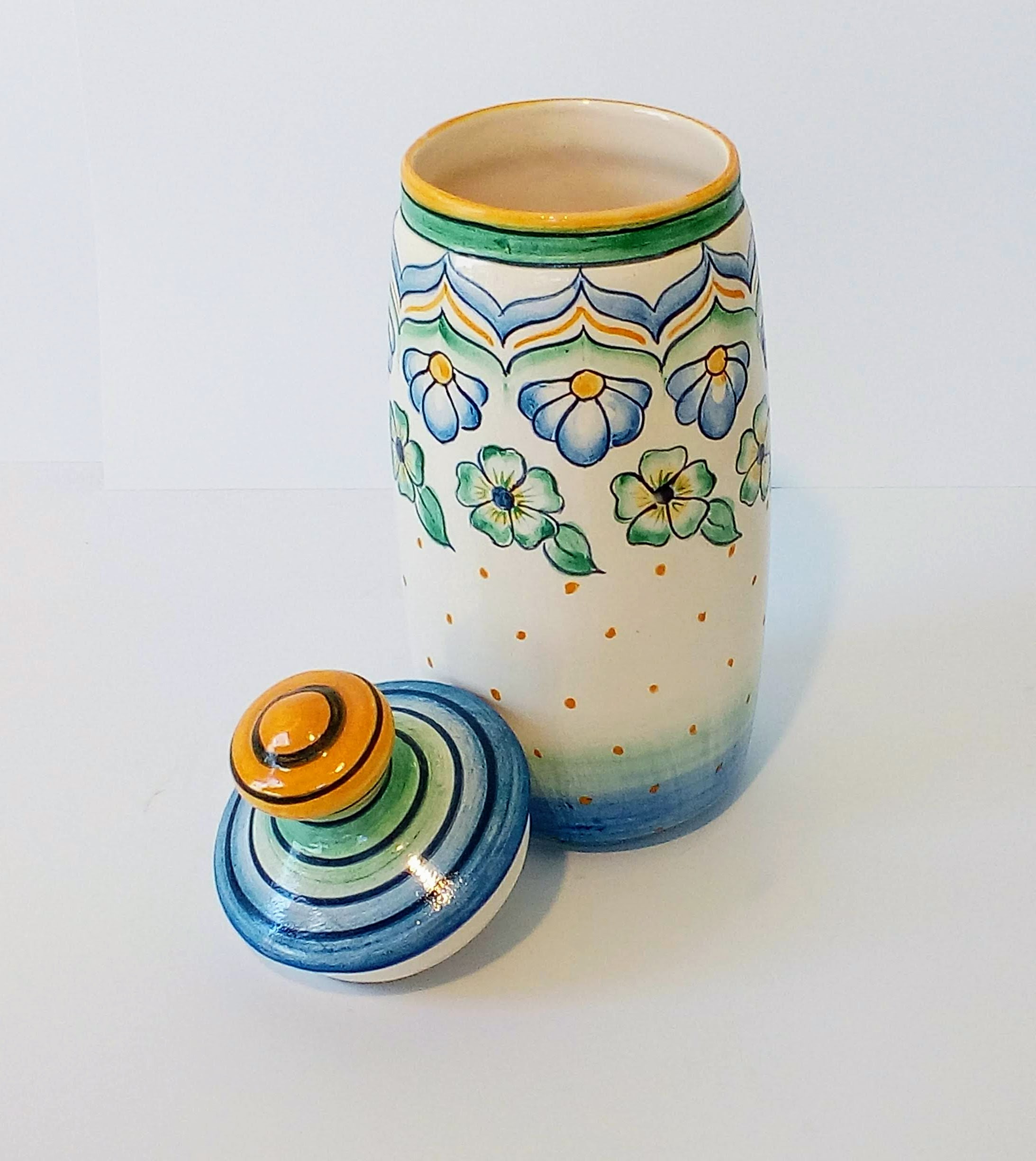 Frasco de cerámica pintado a mano. Técnica bajo cubierta. Ideal para decorar tu cocina,