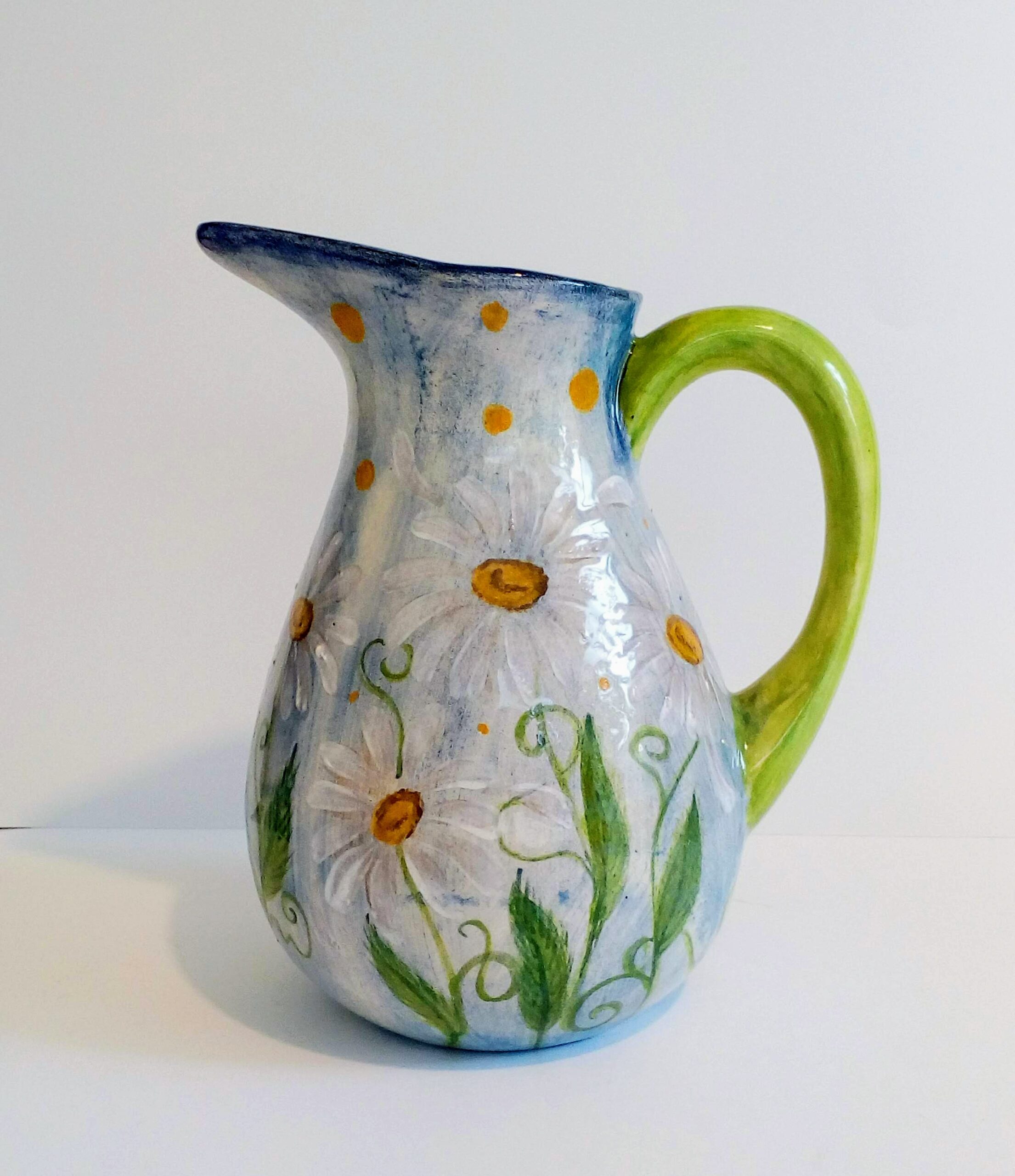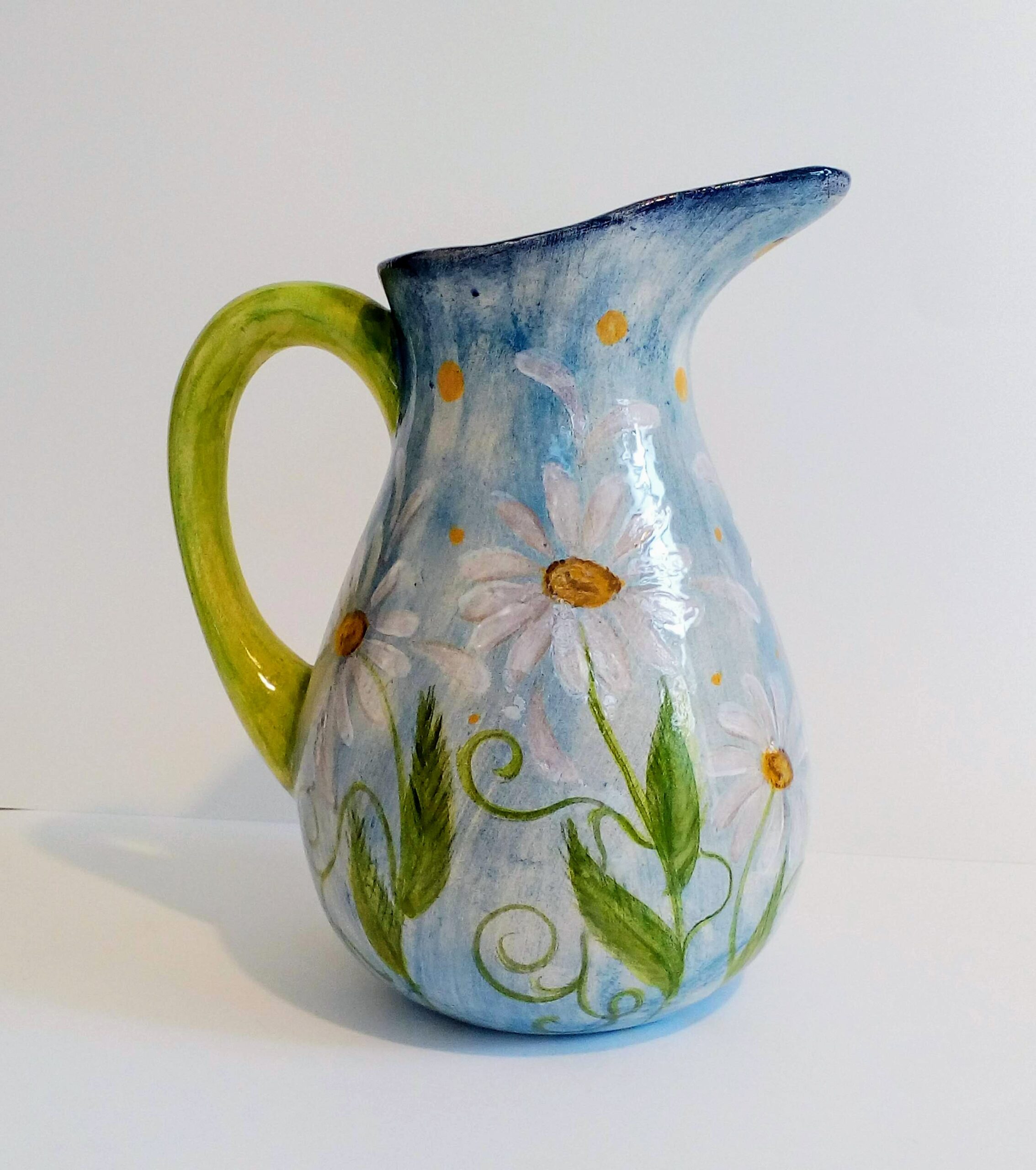 Jarra de cerámica pintado a mano. Técnica bajo cubierta.