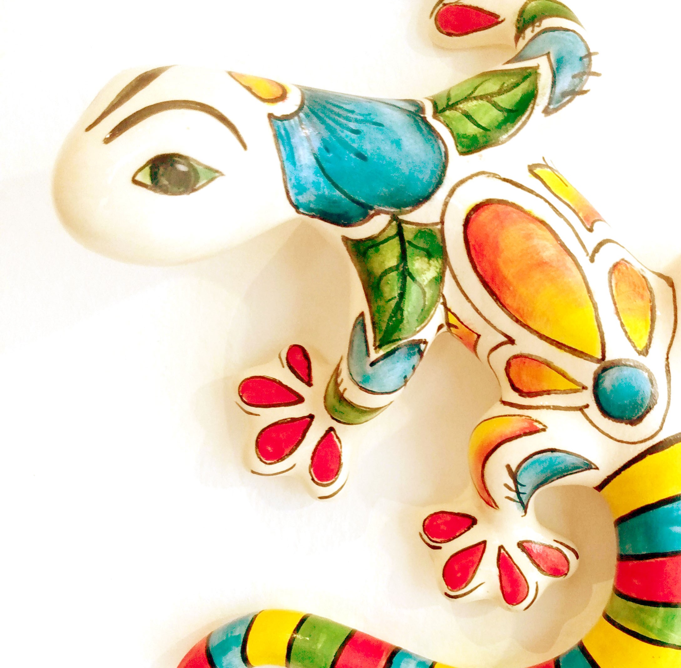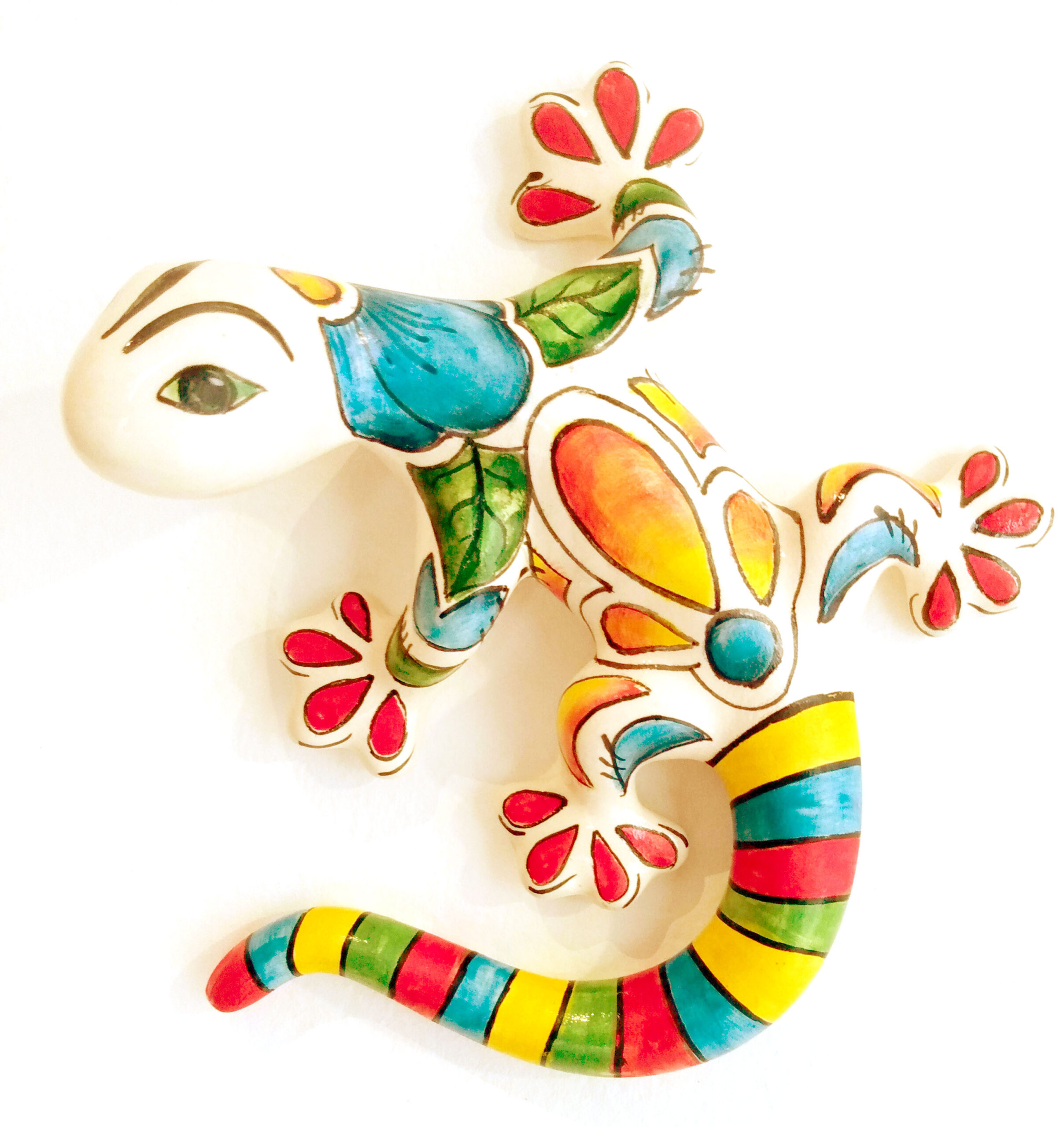 Lagartija decorativa de cerámica pintada a mano. Técnica Bajo Cubierta