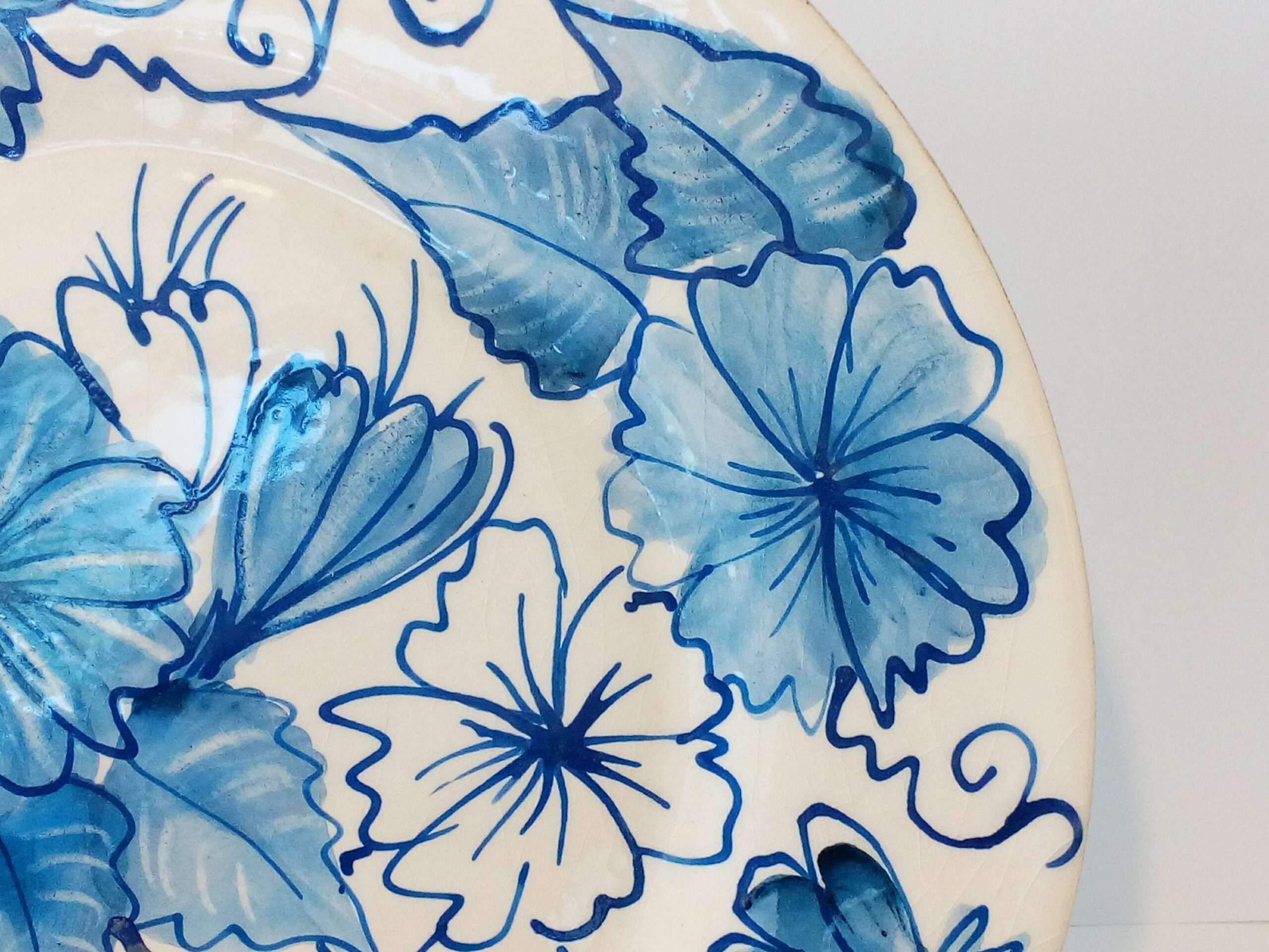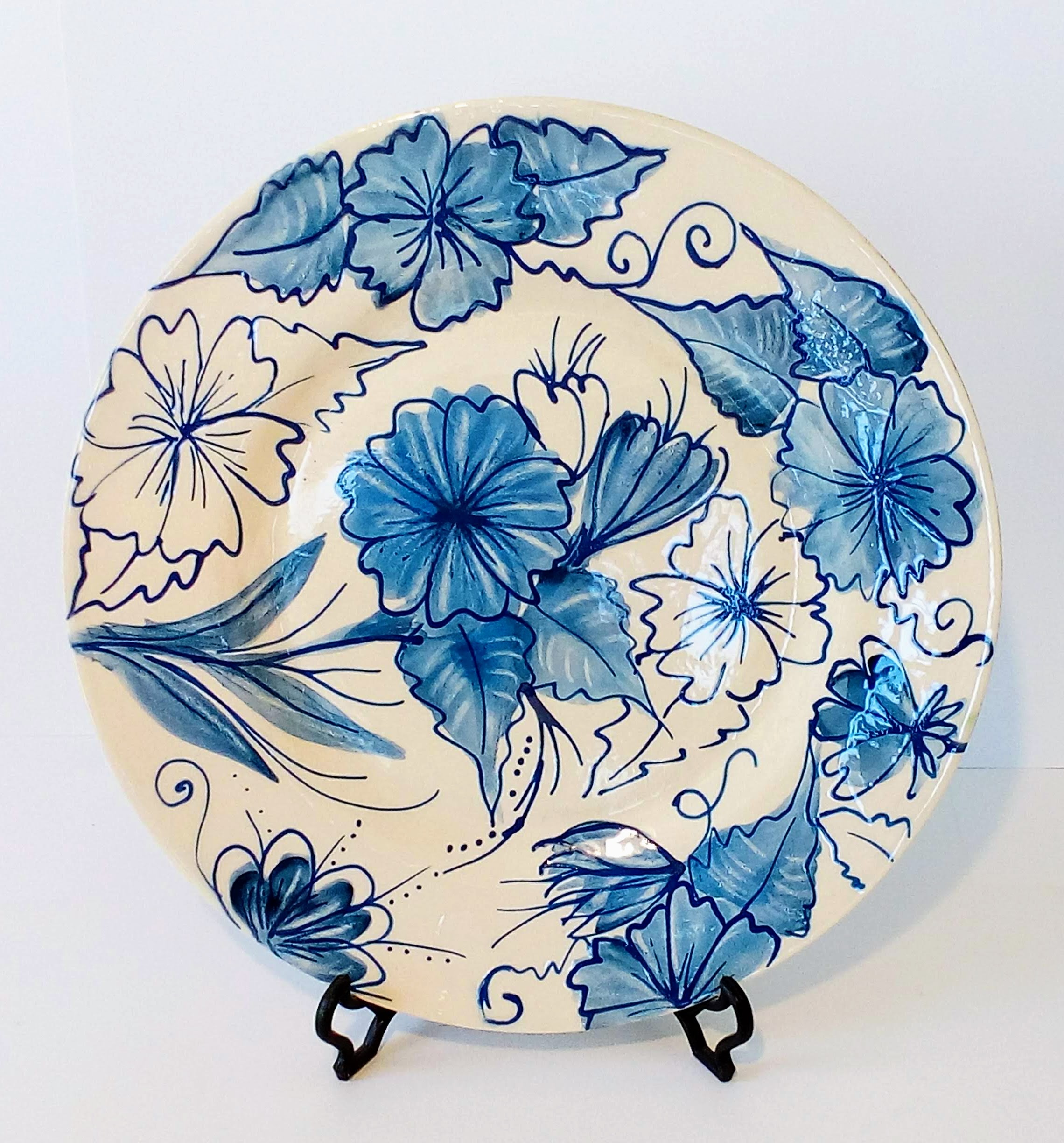 Plato de cerámica pintado a mano. Técnica bajo cubierta.