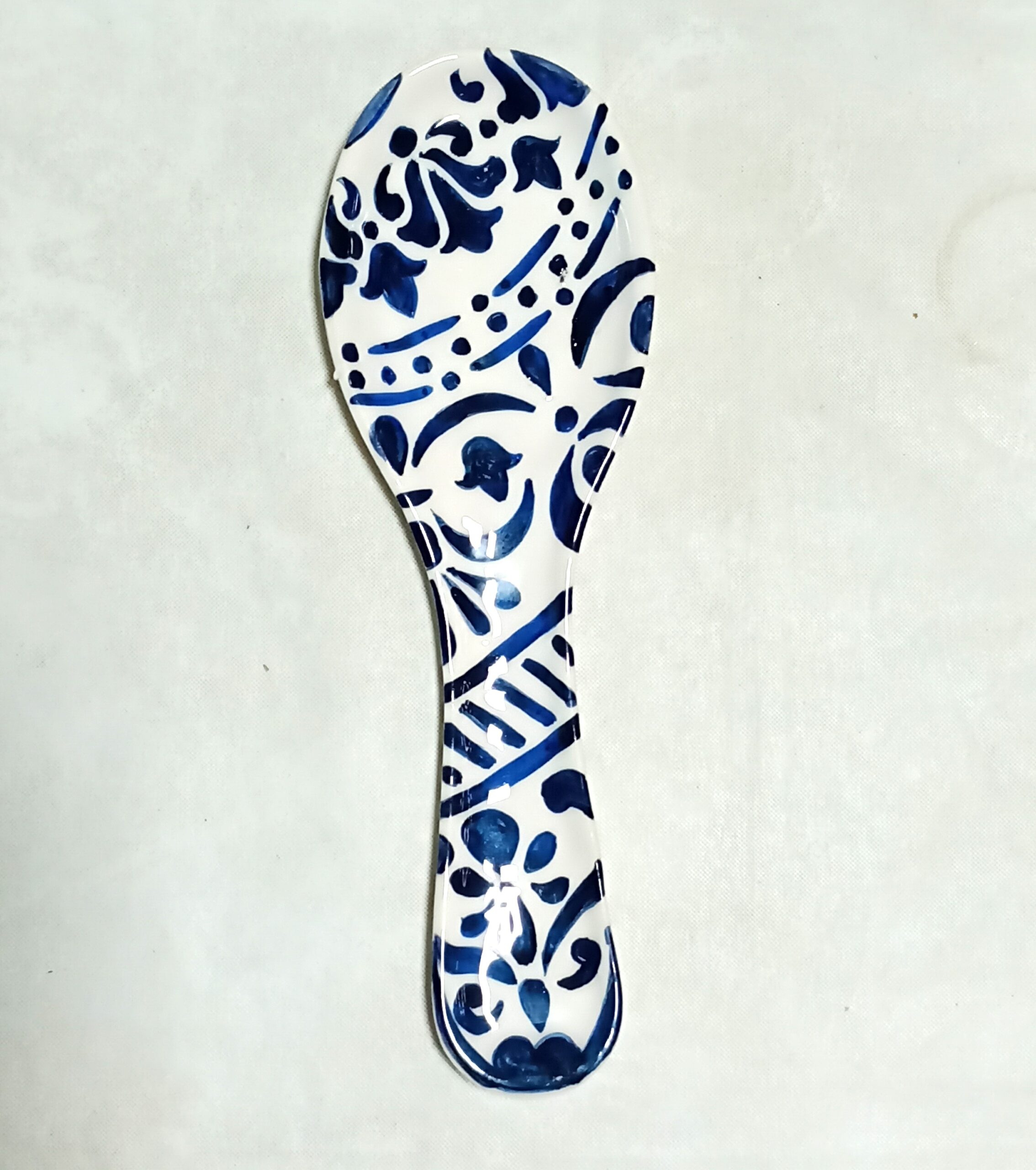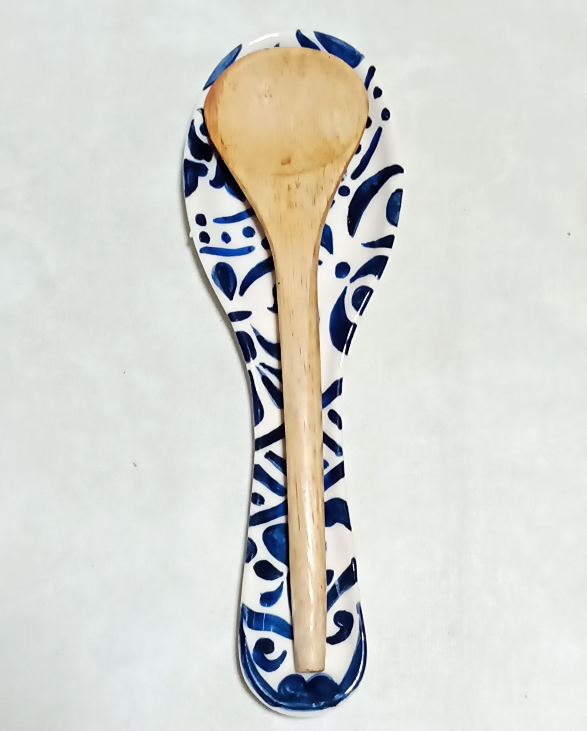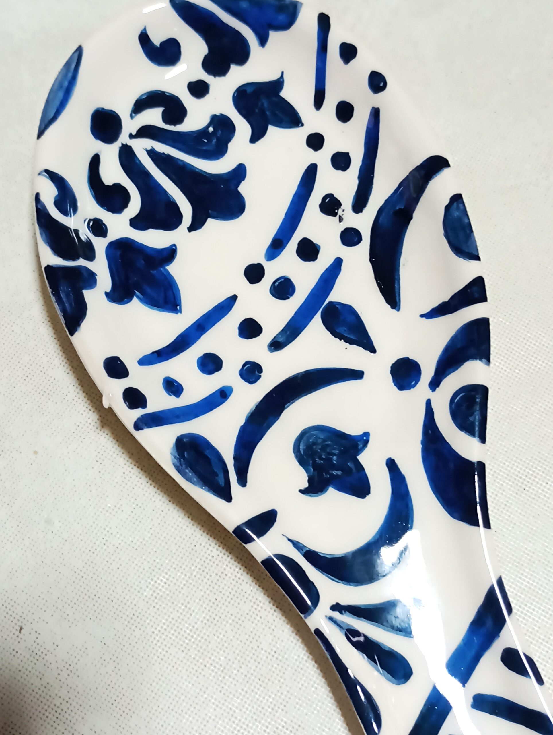 Posacuchara cerámica pintado a mano. Técnica bajo cubierta.