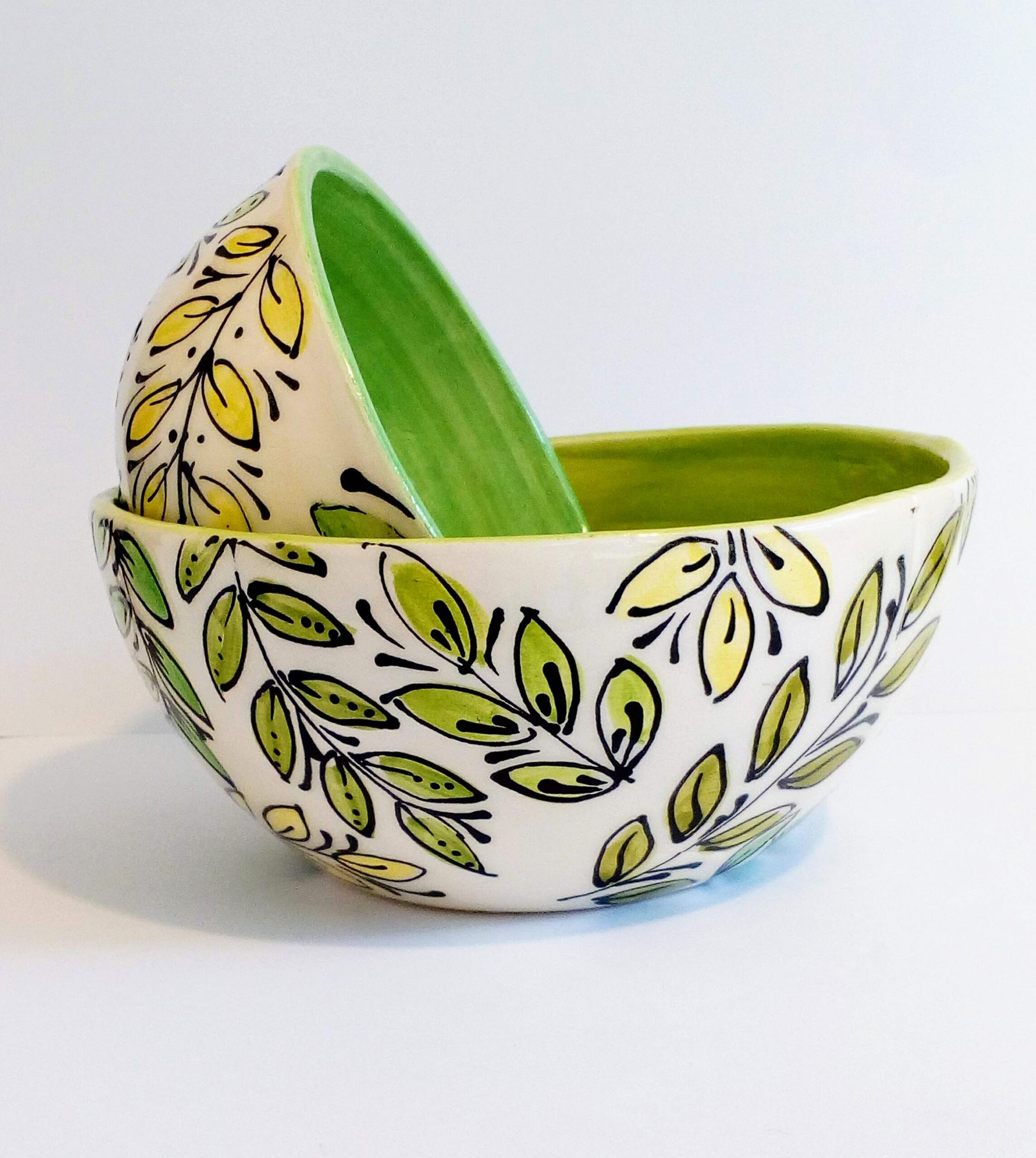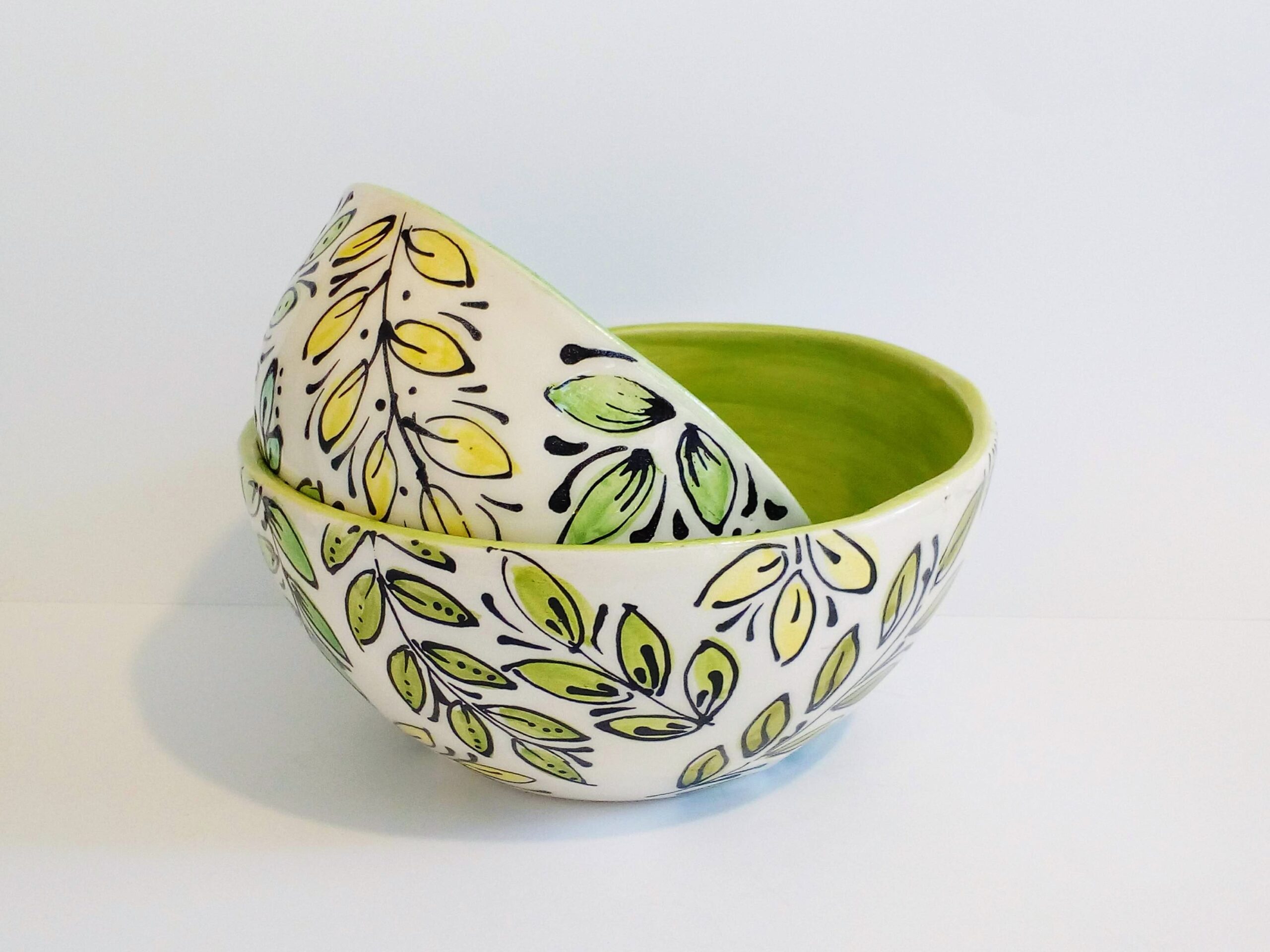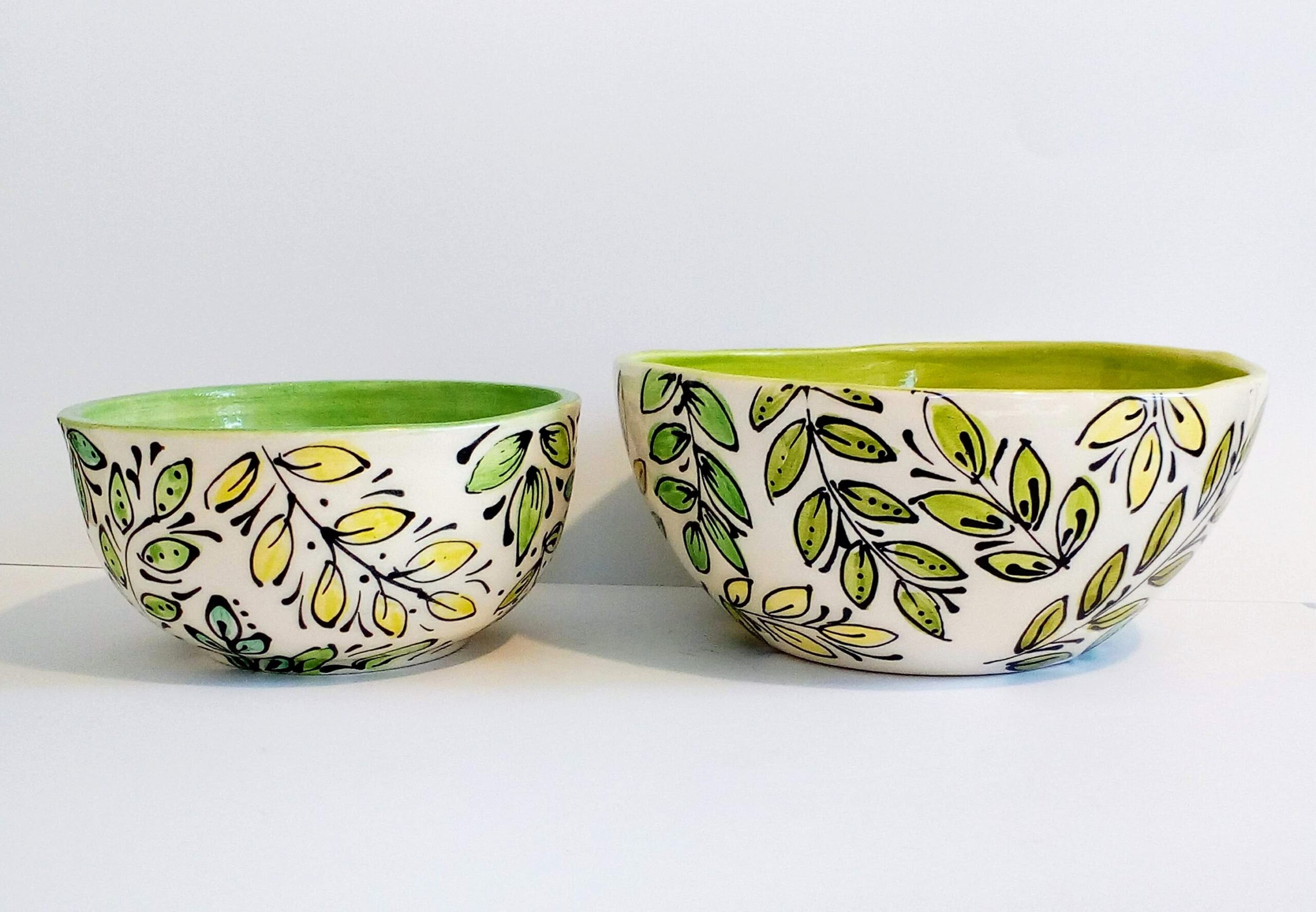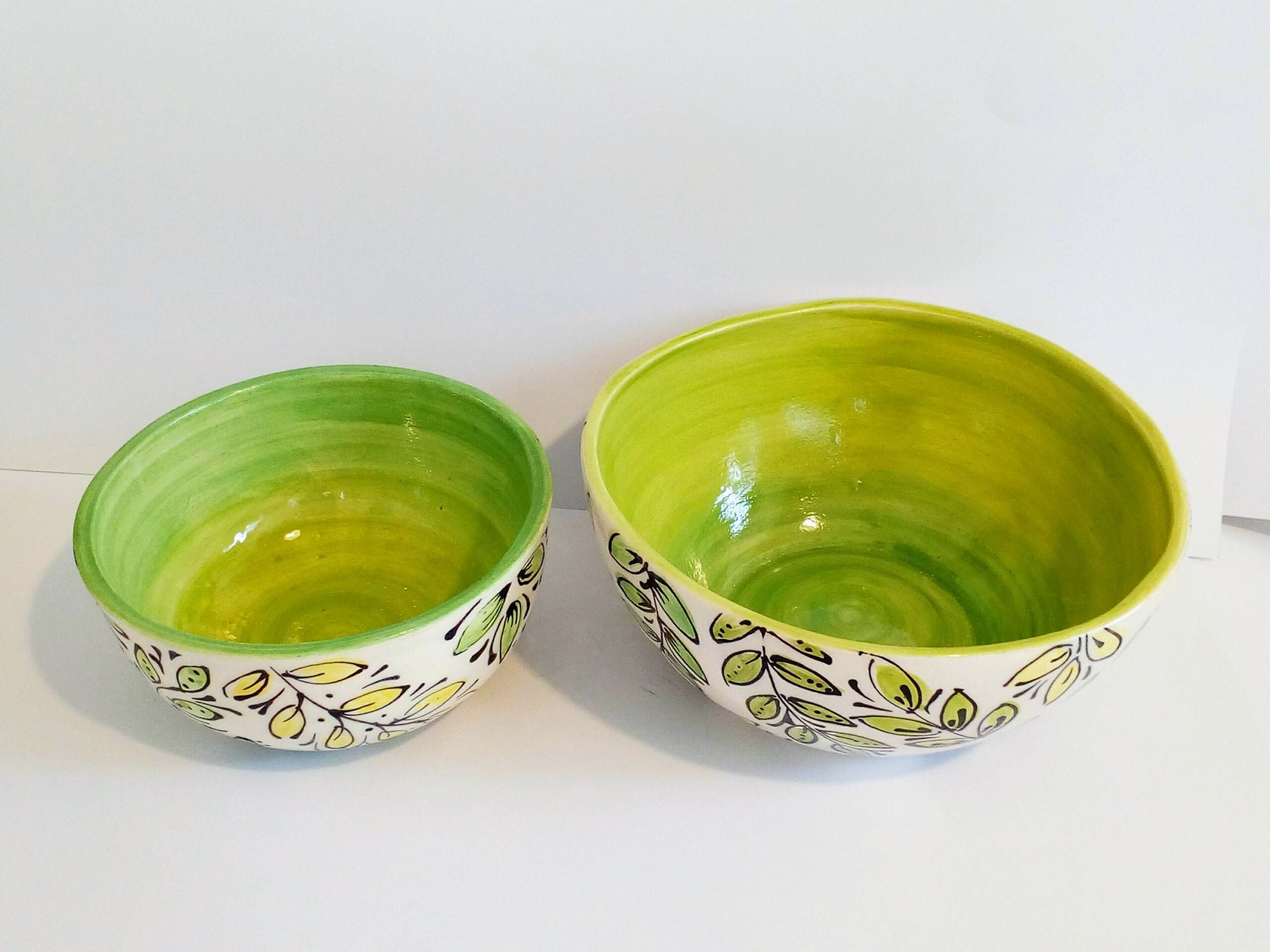 Set de 2Bowl ensaladera de cerámica pintado a mano. Técnica bajo cubierta.